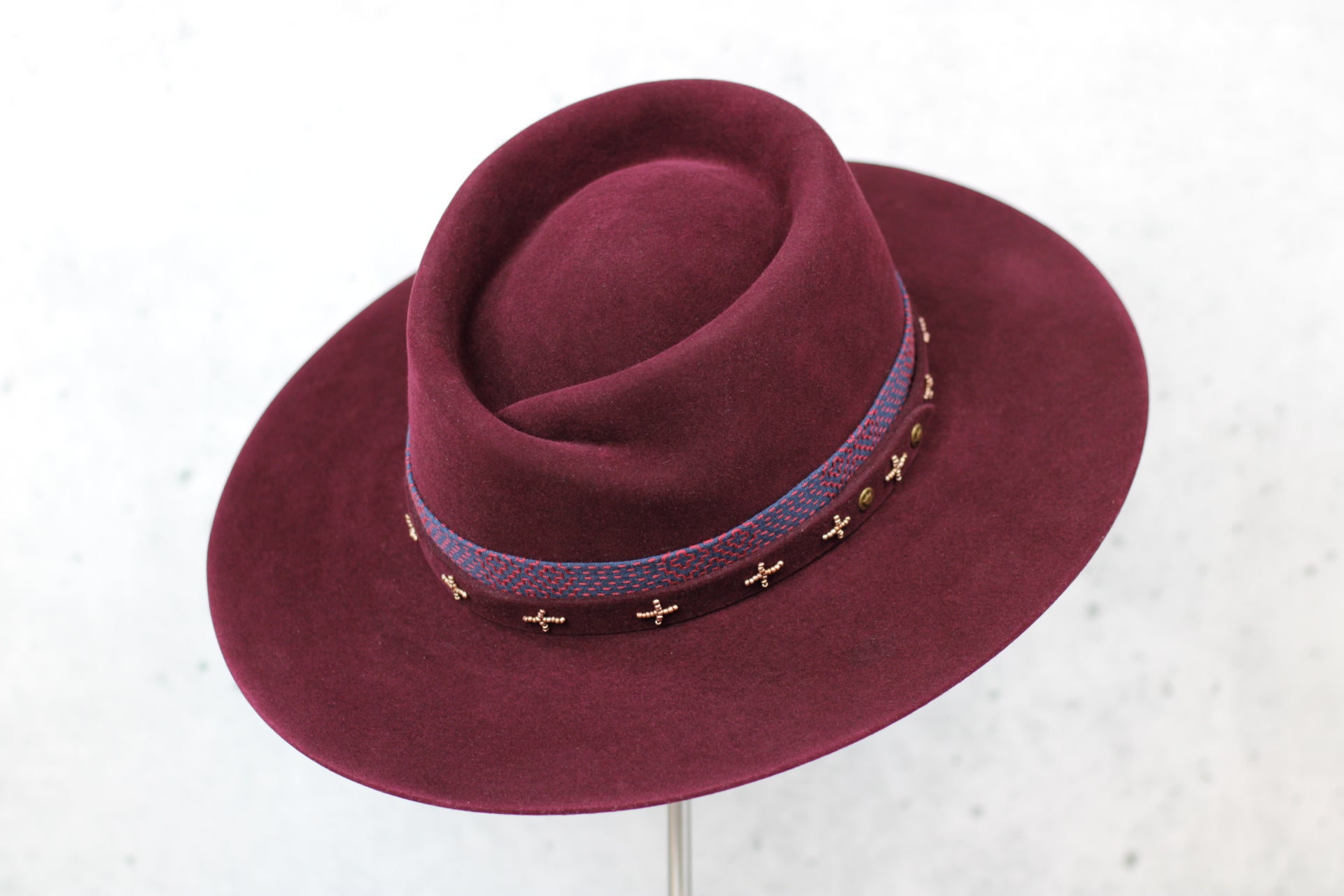 Choose from hat bands, ribbons, stitching, pins, conchos, feathers, and other details to finish your hat. You can keep it minimal or build something more expressive. Embellishments are always optional.