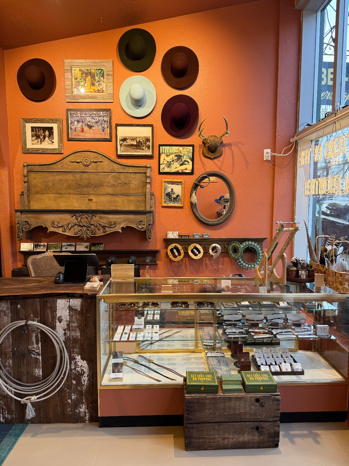 Along with our ready-to-wear hats, we carry a rotating mix of modern Western goods, jewelry, accessories, books, artwork, apparel, gifts, and small-batch pieces from makers we love.