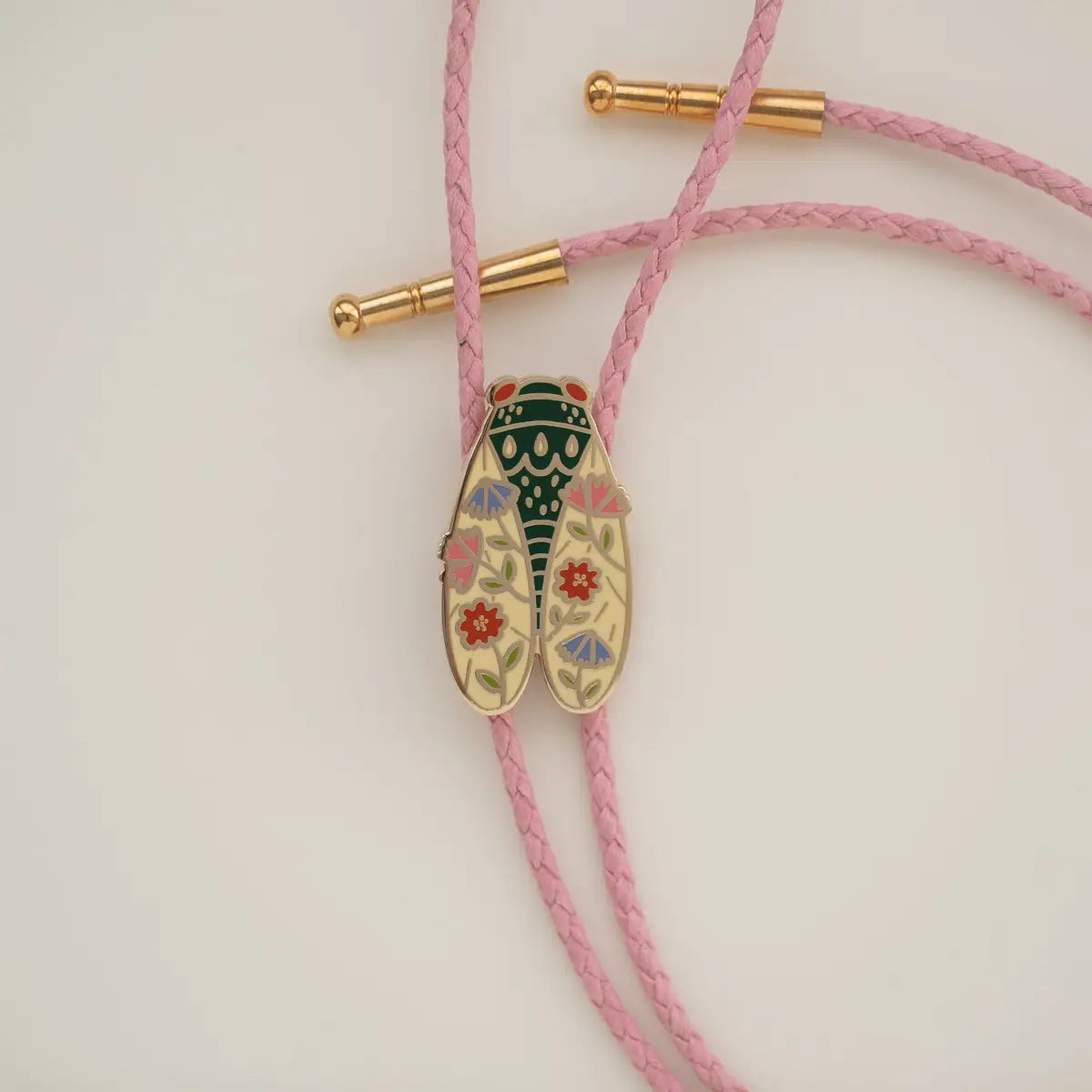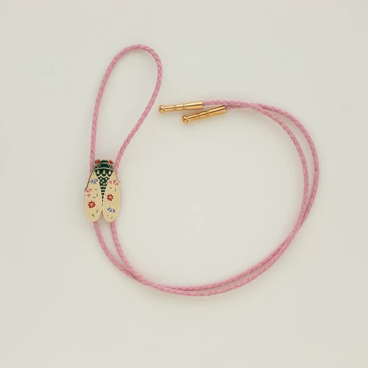 This li'l bolo tie is comprised of: 1.5" Hard Enamel Charm Gold Plated Tips and Bolo Back 32" Vegan Leather Cord. You're sure to be the talk of the town with this shiny little tie, paired with your favorite collared shirt or dress - or no collar. Wearing a bolo is easy as pie and you'll look darn cute no matter how you wear it!